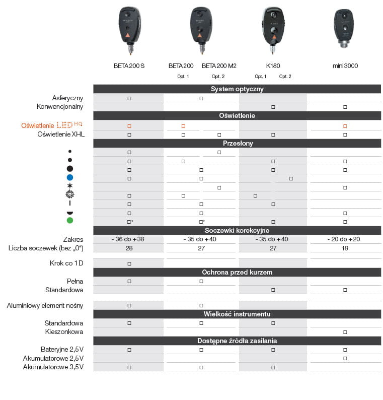 - głowicę oftalmoskopu BETA 200 LED